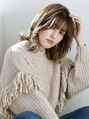 鎖骨下のミディアムベース。ふんわり仕上がる様にドライカットで質感調整しました。カラーはイルミナカラーで透け感をプラス。ヘアアイロンでベースを外ハネにし、表面は内巻きにします。少量のオイルを馴染ませて完成です。
