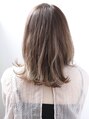 鎖骨ラインのセミディをベースに、トップにレイヤーを入れて女性らしい丸みをプラス。イルミナカラーのベージュで柔らかさを演出。全体の毛先をコテで巻いてラフに散らして仕上げます。