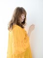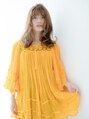 明るめの髪色にぱっつんバングの重めフェザーロングスタイル。ヴェールウェーブにオイルワックスを付けてロングでも軽さを演出。斜めバングや厚めバングで目力強調したり、前下がりで小顔にしても◎