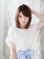 可愛くなれるツヤストレートフェミニン。グレージュカラーで重く見えない透け感色。今旬なゆるふわロブ。伸ばしかけでも簡単スタイリング。耳かけしてシースルーバングで大人かわいい雰囲気に。男女ウケする万能ヘア。前髪も似合わせカットでご相談を。