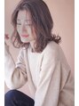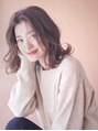 柔らかいミルクティーベージュで女性らしさを引き出しています。顎ラインの前髪は少し動くようにレイヤーを入れ巻いています。