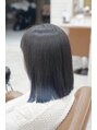 肩ラインの切りっぱなしボブベースにアディクシーカラーで作るダークグレー×ネイビーのハイライトに◎