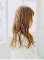 表面に軽くレイヤーが入ったロングスタイルでカラーは透け感のある柔らかいベージュ系ブラウン。中間から毛先にかけて大きいウェーブをつけ、巻いている感があまりない抜け感を目指しました。