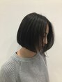切りっぱなしボブで、前髪も流すことによってクールに♪ダーク系のアッシュは透明感あって、今の時期人気です!