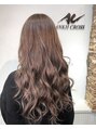 エクステをつけたままのカラーリングです!シールエクステ40枚ほどつけています!カラーは黄ばみやオレンジ味を消して明るさを残したグレージュ系カラーです!