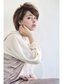 ベースは小顔に見えるダイヤモンド型のショートボブ少し厚めの前髪でトップをふんわり仕上げています。イルミナカラーサファリがさらに髪に柔らかな印象を与えてくれます。小顔、ツヤ、グレージュ、外国人風カラー、ショートボブ、ミディアムボブ