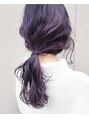 ブリーチをして、深めにラベンダーカラーにしています。カラーがかわいいと結ぶだけでかわいいですっ!