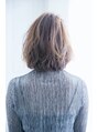 全体的に大きめのウエーブを作りふわっとさせエアリー感ミディアムスタイルです。 立ち上げ風でで分けているのでガーリーになりすぎない大人の女性感をだしています。 春夏にピッタリなさわやかなスタイルです☆