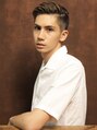 サイドを高めのツーブロックでスッキリさせ、トップと前髪を長めにしたスタイルです。パートをサイドにして後ろに流れる様に毛流れを作る事でモードな雰囲気を作っています。カラーはアッシュで外国人の様な柔らかさを出しています。