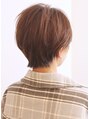 毛先にワンカールパーマをかけたショートスタイルです。襟足をタイトにしてメリハリもありつつ、柔らかさもあるショートに仕上げています。