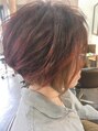 アシンメトリーのショートボブスタイルにピンクカラーのベースにブリーチで1度明るくしてから少し濃い目のグレージュを入れてます。カットとカラーのバランスで大人の方でも遊んで頂けるスタイルに仕上がっています。