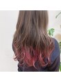 毛先のみピンクグラデーションでかわいさをプラス♪冬は乾燥しやすいのでコタプレミークトリートメントに更に超音波アイロンをかけてファーレイチオシの静電気除去効果有りのコーティングをプラス★