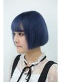 ブリーチ1回以上。ネイビーに少しスモークグレーをON!!!染めたて退色も可愛いです◎ カットはぱつっとワンレングス!