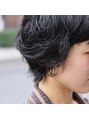 ショート・パーマスタイル。えりあし・耳の前の髪の毛に外ハネのパーマを加えて、全体の大人っぽい雰囲気は残しつつ、無造作な動きをしっかりと。シンプルなショート・パーマだけど、人とかぶらないデザインを少し。