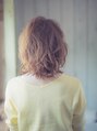 ふわふわカールのミディアムスタイル。レイヤーが入っているのでランダムな動きのあるカールが出ます♪ウルフシルエットで小顔&首長効果があります!明るめのカラーにすることで、さらに軽やかな仕上がりになりますよ!【小岩】