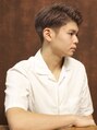 アウトラインを刈り上げた七三ショートスタイルです。パートラインを目の外側ぐらいで決めて七三に分け、トップをやや長めに残す事で毛流れができやすくしています。