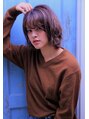 肩の位置ではねる長さですがそれを活かして、全体を細かく動かしたニュアンスボブ。細めに入れたハイライトで、より立体感を表現しました。