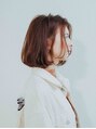 丸いシルエットのワンカールボブです!前髪も重めにワンカールさせます。ブラウン系のカラーでクラシカルな印象に!片耳にかけてアシメのスタイリングで、顔周りもスッキリ見えるのでおすすめです!