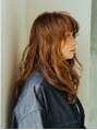 うざバングが特徴のふわふわロングヘアになります!!わざと前髪を目にかかる長さにして今っぽくしました!!カラーは明るい印象に見せてくれるベージュです!