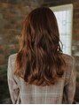 ミックス巻きしたミデイアムのモテスタイル。暗めのチェリーブラウンのカラーが秋冬の可愛らしさを出していておすすめです。前髪はパッツンにすることで大人っぽくなりすぎない印象を作っています。