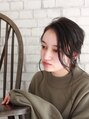 全体にゆるく巻いた髪をおくれ毛を落としながら一つにまとめただけの簡単アレンジ。バックはフィッシュボーンをくずして止めております。