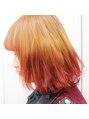 ベージュからオレンジのグラデーションです。ブリーチは2回以上必要になります!ベージュのベースに黄色とオレンジのカラーバターを使用してグラデーションにしてあります!このカラーにしたい方は是非 僕をご指名下さい!!