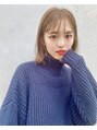 肩上の外ハネスタイルです。トップはレイヤーを入れて軽さと動きが出るようにカットしています。前髪はシースルーバングで軽さを出しています。カラーは10トーンのベージュ系です。