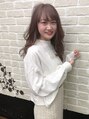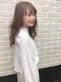 ブラウンベースのカラーに少し赤味を足してツヤを出し、全体は無造作なフワっとしたカールで柔らかさを演出(^^♪バングは流しても、おろしてもその日の気分で変化できるようにしています(*^_^*)