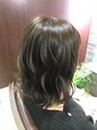 肩位の切りっぱなし大人ボブ無彩色のシルバー系でトーンダウンしながら柔らかさを出して暗髪に。襟足の髪はインナーカラー で落ち着いたパープル系に、色落ちでグレー系になるように染めてます。モノトーン系で大人の女性に。