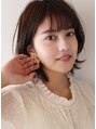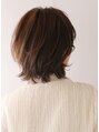 襟足を長めに残したウルフショートスタイルです。耳下の毛を外ハネに、耳上の毛を内巻きパーマをかけているので簡単にスタイリングすることができます。カラーは8トーンのナチュラルなブラウンでイマドキ感と艶っぽさをプラスしています。