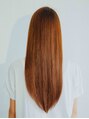 ナチュラルなロングストレートスタイルです!!ロングだと重く見えやすくなりますが、レイヤーを入れてカットで軽くみせてくれます。また、明るめのオレンジカラーでお顔の印象も明るくします。セットが簡単なのでおすすめです!