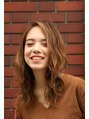 全体的にレイヤーがたっぷり入ってくせ毛風で無造作な動きのウェーブのスタイル。はっきりと効いたハイライトでドライ&フォギーな質感を。手を加えていないようなラフな動きがいい感じです! 赤みが苦手な方にも白髪染めにも対応できる美肌カラーリングです