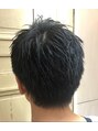 髪が硬くて、直毛なので、あまりシャープになり過ぎないように、厚めに刈り上げて量を調節しました。