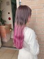 ケアブリーチを数回してピンクラベンダーをベースにいれてアクセントカラーで毛先にピンクバイオレットをいれてます☆