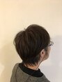 耳回りにメガネフレームに合わせたグレージュのインナーカラーを。いつまでもオシャレ心を忘れずに。