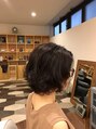 ショートボブにパーマをかけてやわらかさを。ざっくり結べるぎりぎりの長さに。