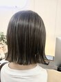 全体的に細かいハイライトをたくさん入れてグレージュになるようオンカラーカットはまだまだ人気な切りっぱなしボブに【N°3hair lounge溝の口店】
