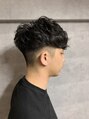 大人気のパーマスタイルです。刈り上げの位置を高めに設定し、顔まわりに重さがたまるように前下がり気味にカットし躍動感をいれました。パーマは毛先に動きが出るようにし無造作な動きがオシャレなヘアスタイルになっています。