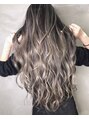 バレイヤージュハイライトアッシュグレー、グレージュ