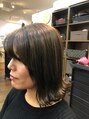 切りっぱなしのボブを外ハネアレンジに。ウエット感だして流行りのスタイルに