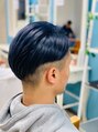 ワイルドヘアーに少し遊び心を加えたオシャレカラーに変身!!光の当たり方で色の見え方が変幻自在♪色落ちも楽しめるブルーカラー【岡山】【倉敷】【白楽町】