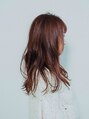 表面に軽くレイヤーが入ったロングスタイルでカラーは透け感のある柔らかいベージュ系ブラウン。 中間から毛先にかけて大きいウェーブをつけ、巻いている感があまりない抜け感を目指しました。
