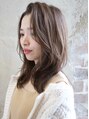 前髪は大人っぽい色気が出るかきあげバングで綺麗に流れるようにレイヤーをアゴ下から入れています!丸顔さんや大人っぽく見せたい方にオススメスタイルです!カラーはオレンジ味をしっかり消したヌーディーベージュ。トリートメントでカラーの持ちUP!