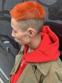 UKな空気感。前下がりのモヒカン。ブリーチからのオレンジヘア。オリジナリティあるヘアを求める方に。