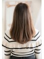 鎖骨下のワンレングスに顎下までレイヤーを入れて、ゆる~いネコっ毛風のパーマか分からないくらいのニュアンスパーマをかけるとセットが楽に。カラーはショコラベージュで黄味を抑えて。