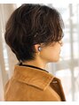 襟足をスッキリおさめたハンサムショートスタイル。女性らしさをパーマや癖をいかして柔らかく抜け感のある感じに仕上げています。
