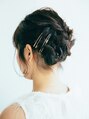 スタンダードにかわいいアップスタイルです。ダークトーンのカラーでも重たくならないアレンジ。シースルーバングで今っぽく。