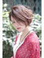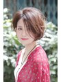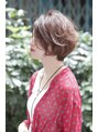 前下がりボブにふんわりボリュームがでるように大きめのカールでパーマを。スッキリしたラインですが柔らかい印象のボブスタイルです。