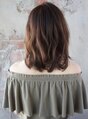 動きが出るようにカットは少しレイヤーを入れてデジタルパーマをかけたミディアムスタイルです。おろし流しのシースルーバングはおしゃれ感UP!デジタルパーマは髪の状態に合わせて低ダメージなものを選択。カラーは肌馴染みの良い柔らかココアブラウンです