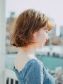 外ハネをベースに細い毛束で巻いたショートスタイルになります。重くなり過ぎないように少しレイヤーを入れて明るい印象に見せてくれます!!カラーリングは明るいブラウン系でナチュラルに元気な印象を作ります!!【稲毛】